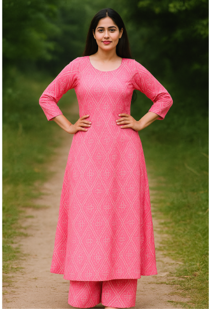Add a splash of tradition to your wardrobe with this beautiful pink Bandhani fabric and create unique outfits that reflect your style. š